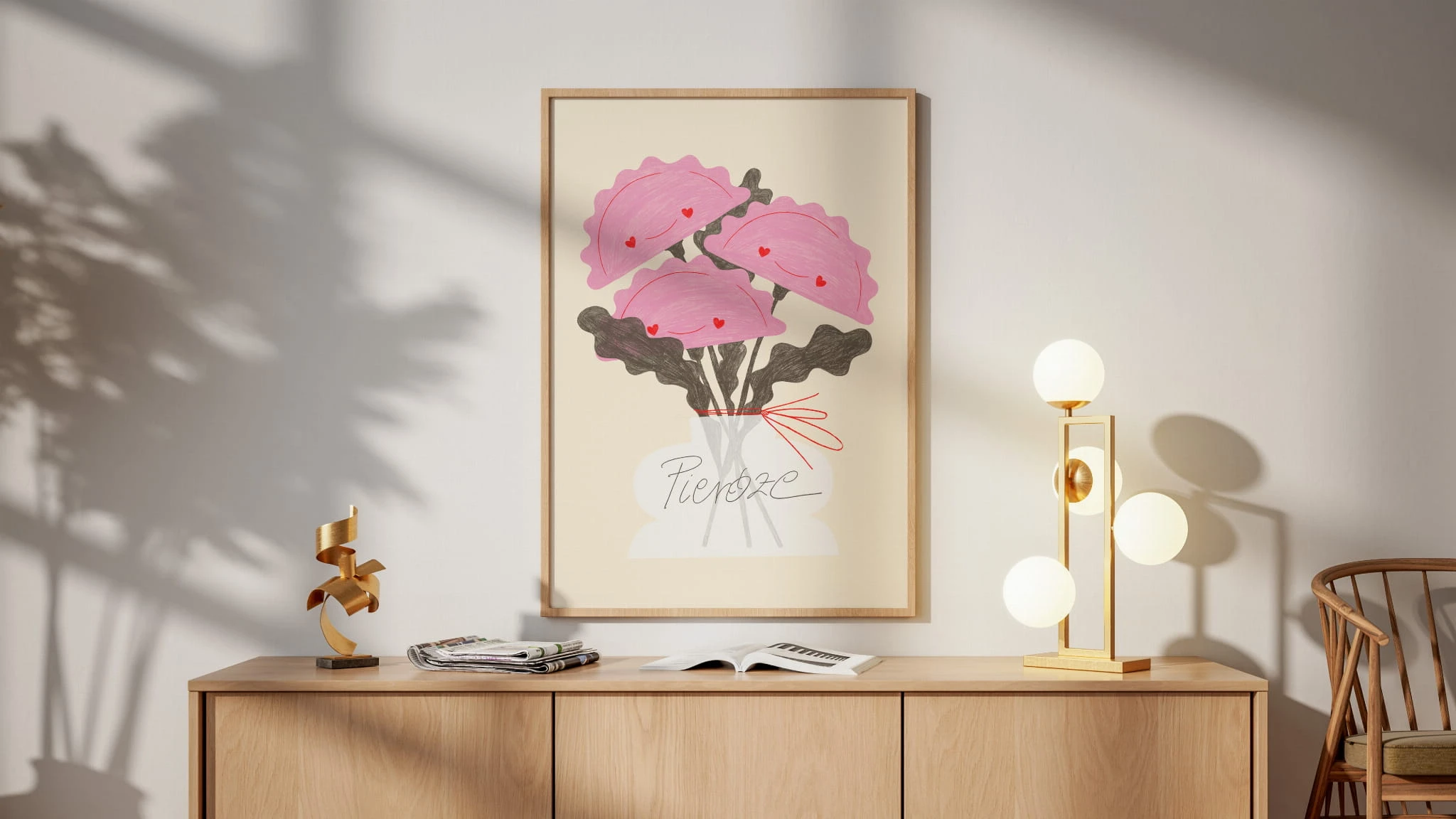 Czy to róża? Czy to pieróg? Po co wybierać, skoro można mieć oba? Plakat z pieroróżami zaprojektowany prze Lolada Illustration łączy w sobie uroczość Pieroguszek i piękno kwiatów, a przy tym nigdy nie zwiędnie i zawsze będzie cieszył oczy w przeciwieństwie do tradycyjnych bukietów. Ozdobi ściany każdego pomieszczenia, nie ważne czy będzie to salo, sypialnia czy kuchnia. A może zawiśnie w Twojej restauracji?